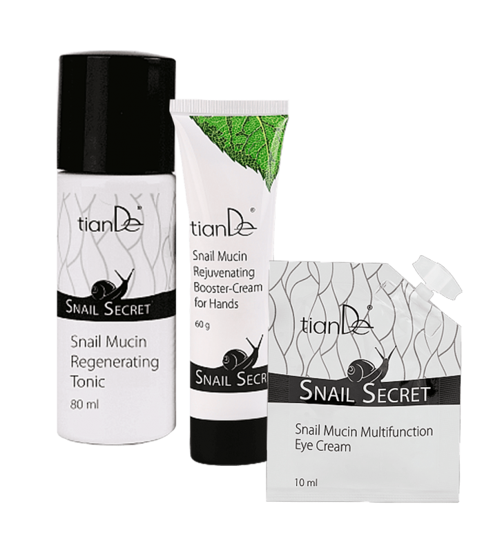 Rinkinį sudaro: paakių kremas, tonikas, rankų kremas su sraigių mucinu