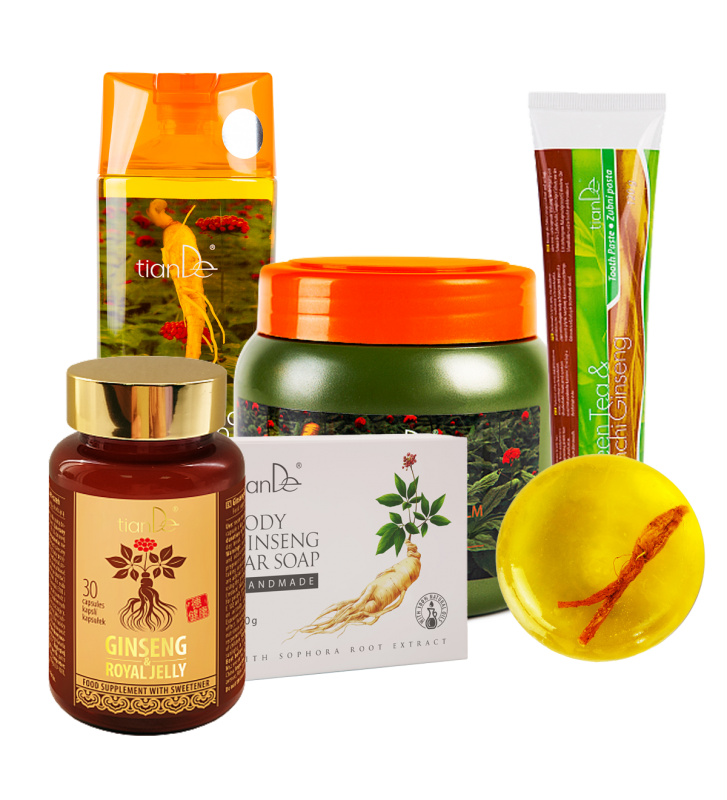 Pirk 4 priemones: maitinamąjį šampūną su ženšenio šaknimi + atkuriamąjį plaukų balzamą su ženšenio ekstraktu + ženšenio muilo gabalėlį kūnui + dantų pastą “Žalioji arbata ir pietinis ženšenis” – PADOVANOSIME maisto papildą su saldikliu “Ženšenis ir bičių pienelis”*!